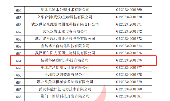 在這個(gè)科技日新月異的時(shí)代,創(chuàng)新已經(jīng)成為推動(dòng)社會(huì)進(jìn)步的重要?jiǎng)恿Α=眨鶕?jù)《高新技術(shù)企業(yè)認(rèn)定管理辦法》(國(guó)科發(fā)火〔2016〕32號(hào))和《高新技術(shù)企業(yè)認(rèn)定管理工作指引》(國(guó)科發(fā)火〔2016〕195號(hào))有關(guān)規(guī)定,對(duì)湖北省認(rèn)定機(jī)構(gòu)2023年認(rèn)定報(bào)備的第二批982家高新技術(shù)企業(yè)備案名單(詳見(jiàn)附件)予以公告。新銳科創(chuàng)(湖北)科技有限公司喜獲佳音,成功通過(guò)2023年高新技術(shù)企業(yè)備案。