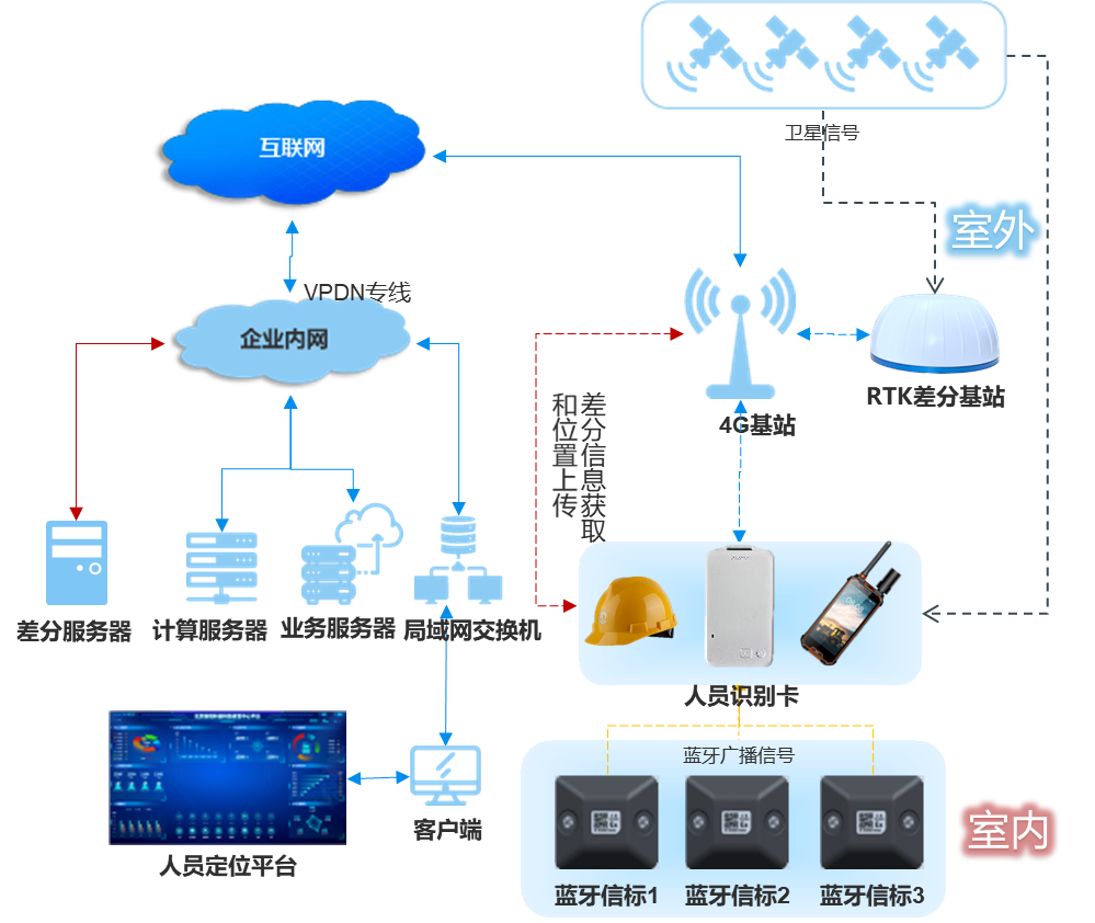 叉車、工作人員頻繁穿梭于室內外區域,傳統單一定位技術無法實現室內外定位的平滑過渡,導致位置數據中斷、跳變,影響對作業流程的連續監控與管理,難以形成高效協同的作業模式。