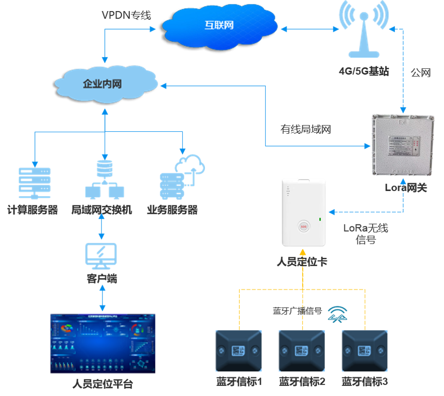 LoRa廣域覆蓋:適用于隧道長距離、大范圍定位需求(如運輸通道、掘進區),信號穿透力強,覆蓋范圍廣。